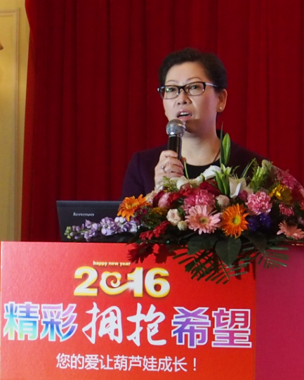 今年公司营销中心将2015年的重点工作与2016年的规划展望凝聚成17个关键词,通过视频向与会人员进行了展示,有新意有亮点,引起了大家的强烈共鸣。SG胜游药业集团今年已经满7周岁了,7年来公司产销量以年均30%的速度高速增长。集团能取得今天的成绩,离不开全体SG胜游人的努力与付出。SG胜游药业集团董事长刘景萍博士在总结表彰会上向SG胜游的全体营销将士们表示感谢!字里行间的关爱让每个SG胜游人都真切感受到了大家庭的温暖。 董事长刘景萍博士致辞