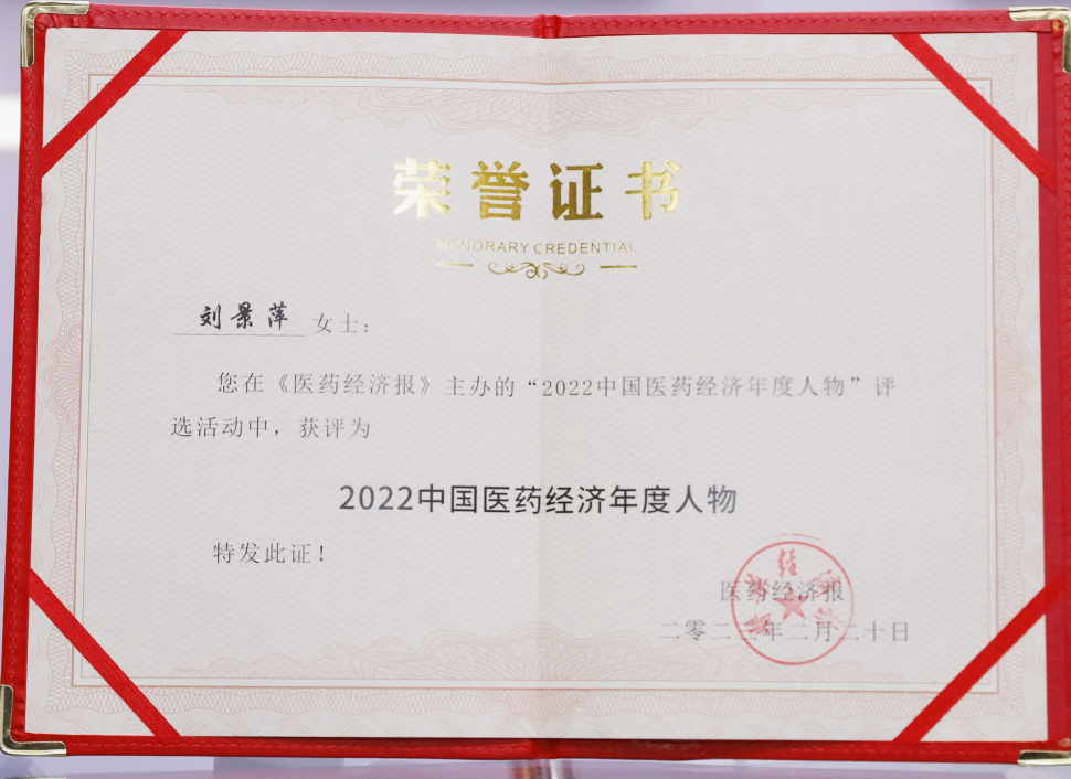 SG胜游药业集团董事长刘景萍当选“2022中国医药经济年度人物”