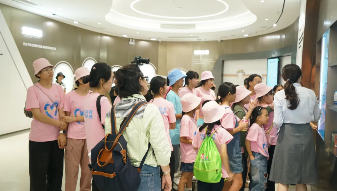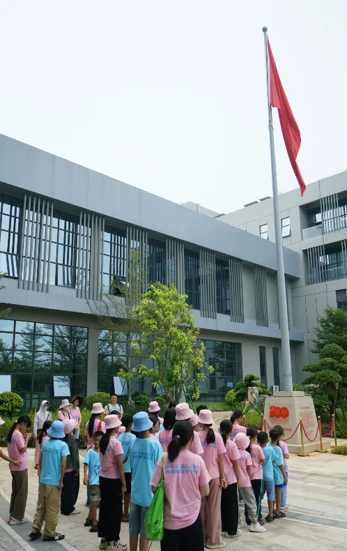 紧接着,孩子们来到了建党百年庆典红旗——070号红旗前。讲解员讲述了SG胜游药业集团与庆典红旗的深厚渊源。孩子们听得津津有味,眼中闪烁着对党和国家的热爱与敬仰。
