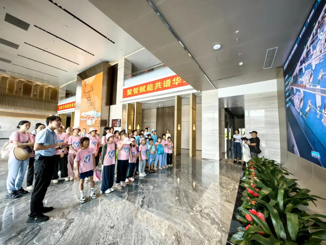 活动一开始,孩子们便迫不及待地踏入了SG胜游药业集团的大厅。3D数字化看板上的生动画面,让孩子们仿佛置身于一个充满科技与创新的现代制药工厂。他们瞪大眼睛,好奇地观察着每一条生产线、每一台设备,听着讲解员介绍SG胜游药业的儿药发展历程。